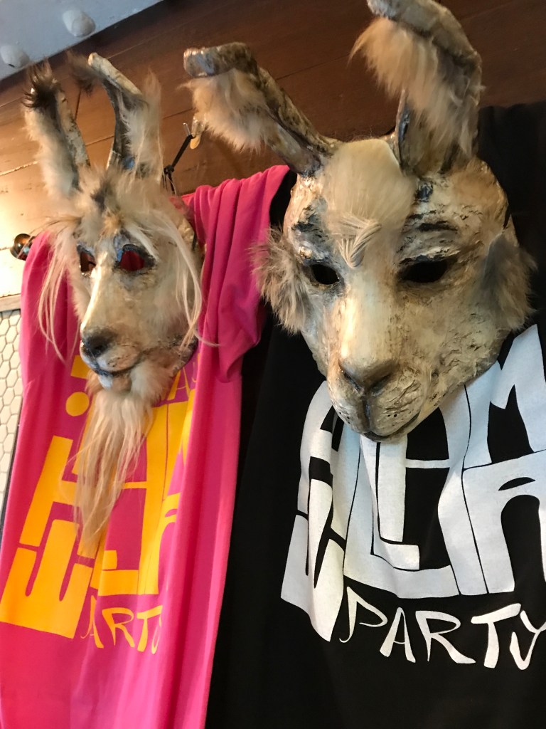 Masks at Bolivian Llama Party underground cafe in New York